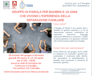 GIOVEDI’ 30 MARZO, 6,13,20 APRILE ore 17 -19 – Centro per le famiglie – sede di Formigine Villa Bianchi