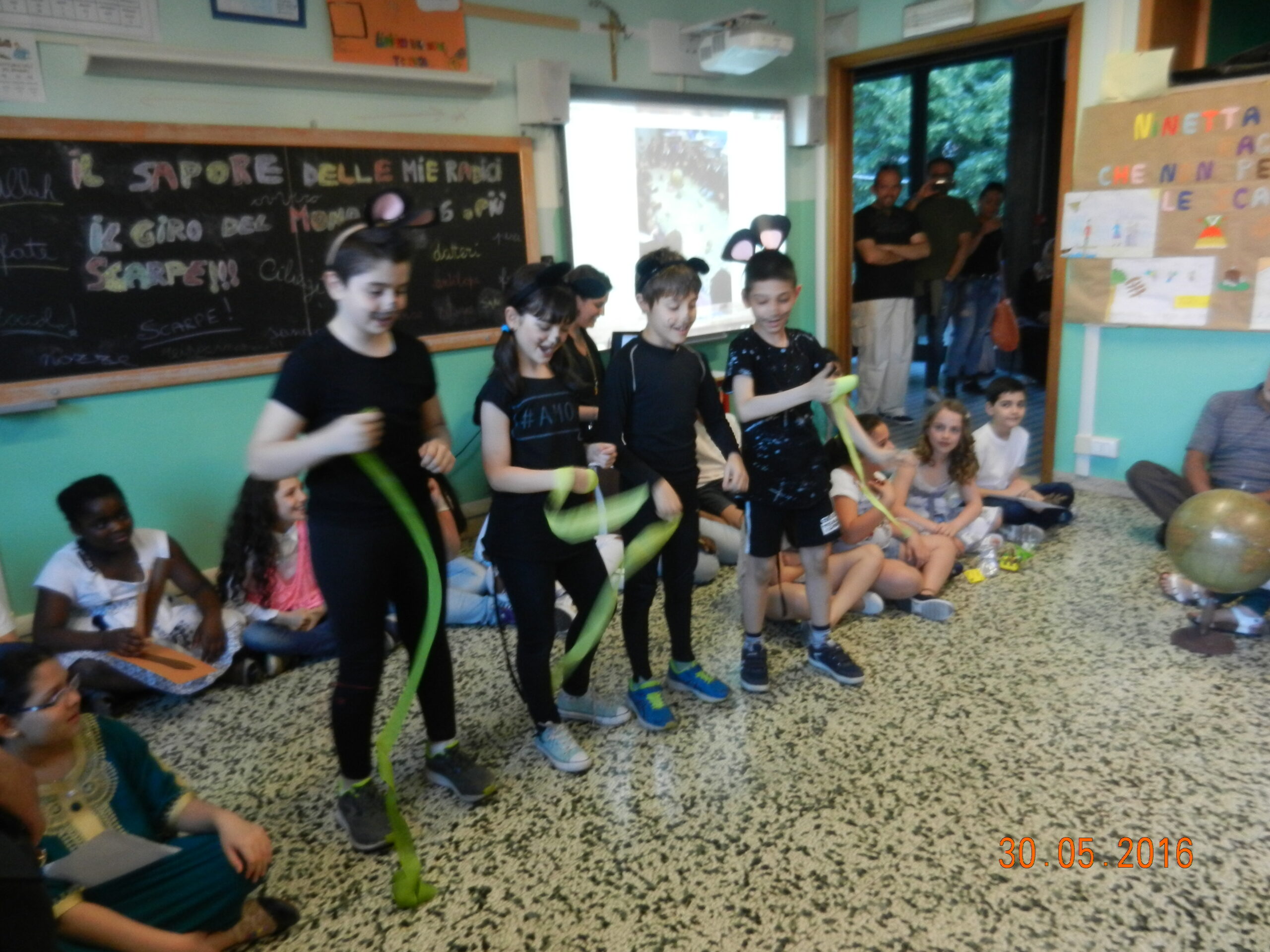 I bambini hanno drammatizzato le loro filastrocche e cantato la diversità, i genitori hanno offerto un momento di convivialità raccontando il matrimonio nelle diverse culture attraverso suoni, cibi, abiti, tradizioni, foto mentre le note della marcia nuziale introducevano una coppia di sposi alquanto buffi!!